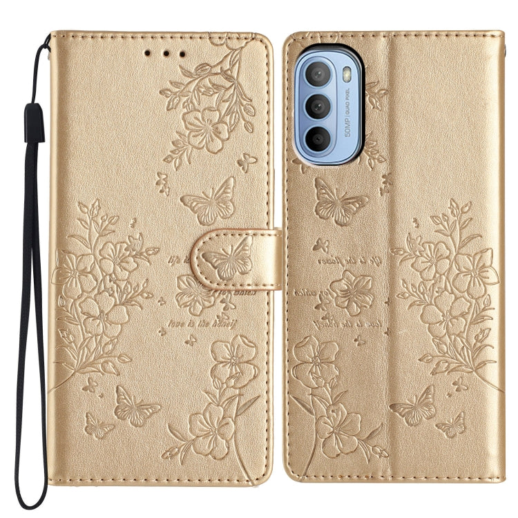 Funda de Cuero para Motorola Moto G52 con Mariposas y Flores (Dorado)