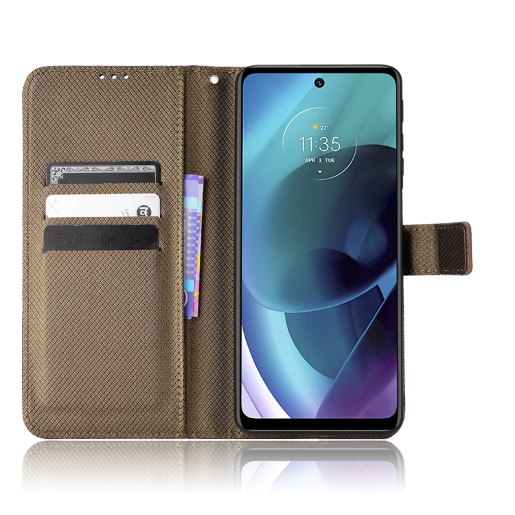 - 1x Funda para Motorola Moto G52J 5G Caja de Cuero con Textura de Diamante (Marrón)