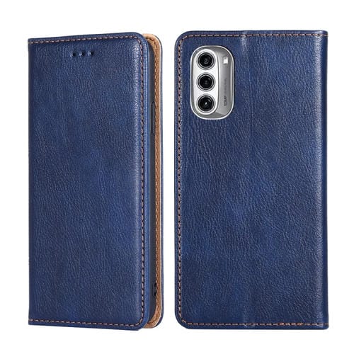 Funda de Cuero Magnética para Motorola Moto G52J 5G (Azul) Color Sólido Oil Glossil