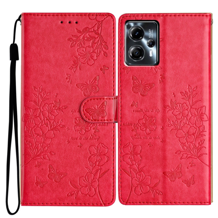 Funda de Cuero para Motorola Moto G53 5G con Mariposas y Flores (Rojo)