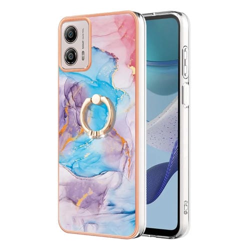 • 1x Funda TPU Galvanoplastia IMD con Anillo para Motorola Moto G53 5G (Mármol Azul)