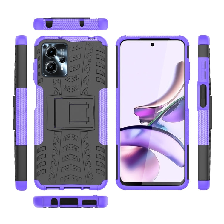 For Motorola Moto G53 Tire Texture TPU+PC Phone Case with Holder (Purple)