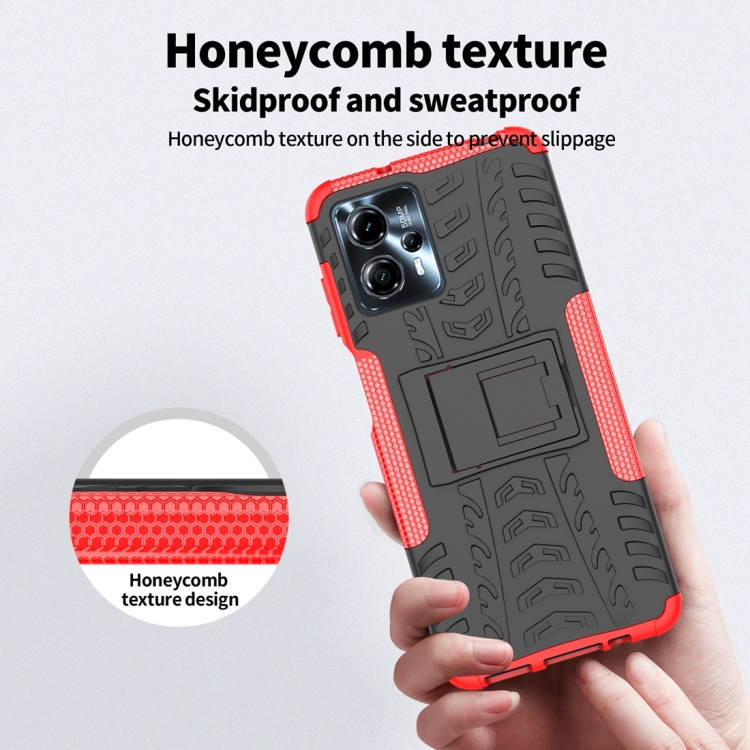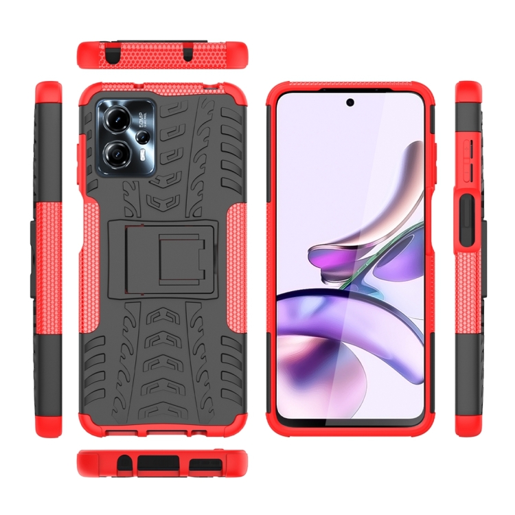 Funda para Motorola Moto G53 Tire Texture TPU + PC con Soporte (Rojo)