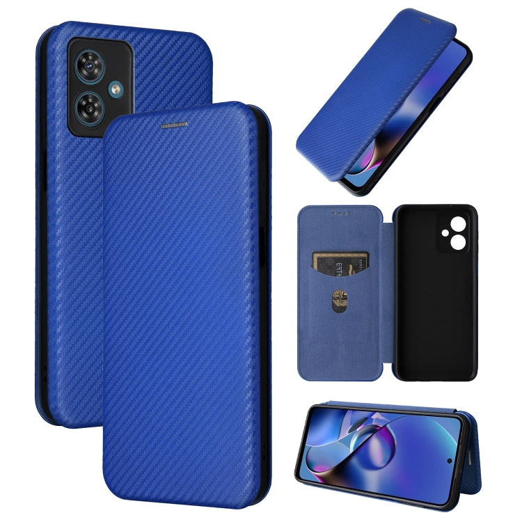 Funda de Cuero para Motorola Moto G54 5G con Tapa y Textura de Fibra de Carbono (Azul)