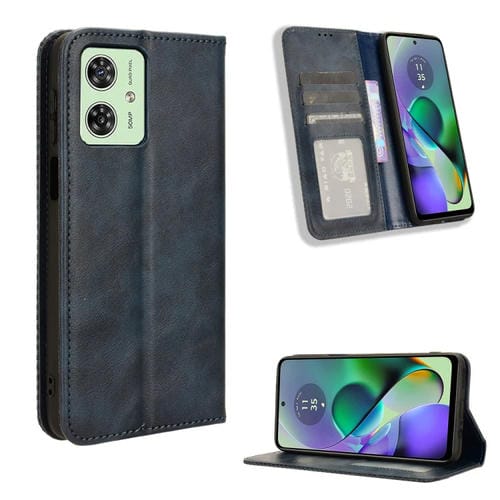 Funda para Motorola Moto G54 5G de Cuero con Textura Retro y Hebilla Magnética (Azul)