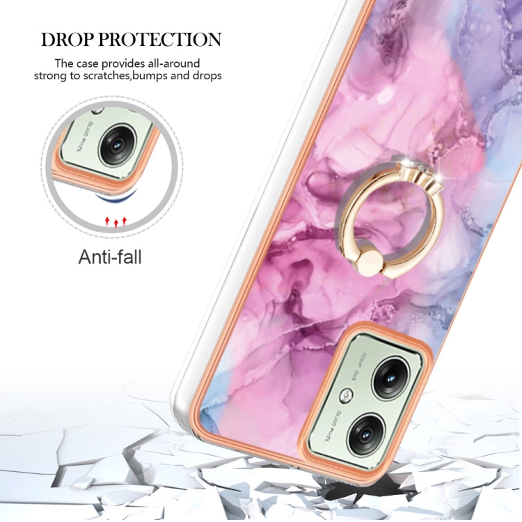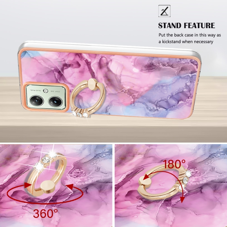 Estuche para Motorola Moto G54 Imd Doble Cara Mármol Galvanizado con Anillo (Rosa)