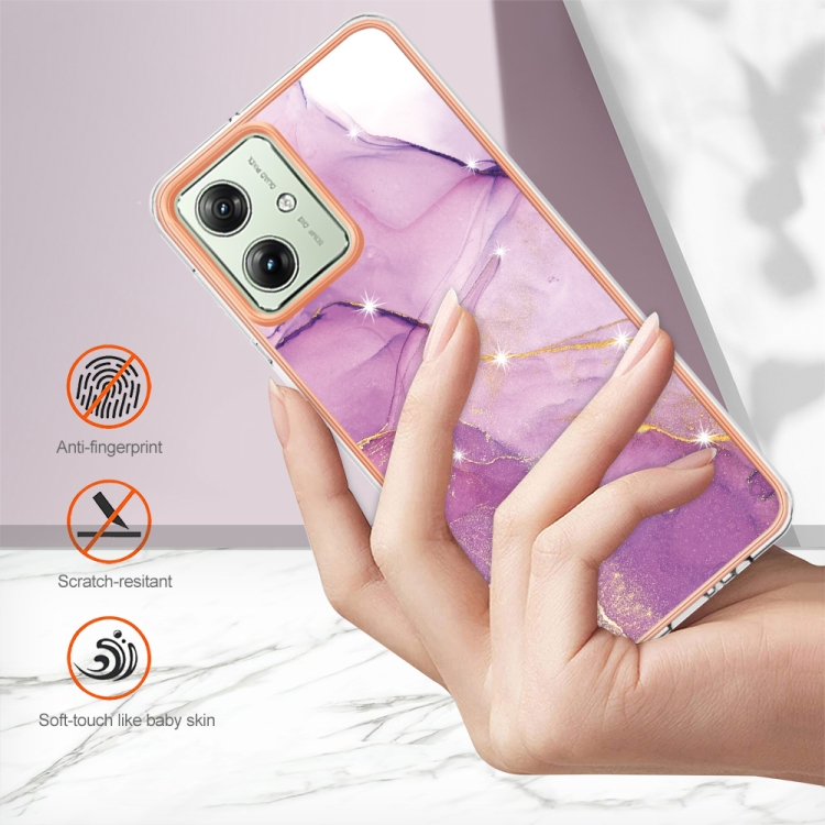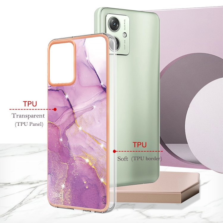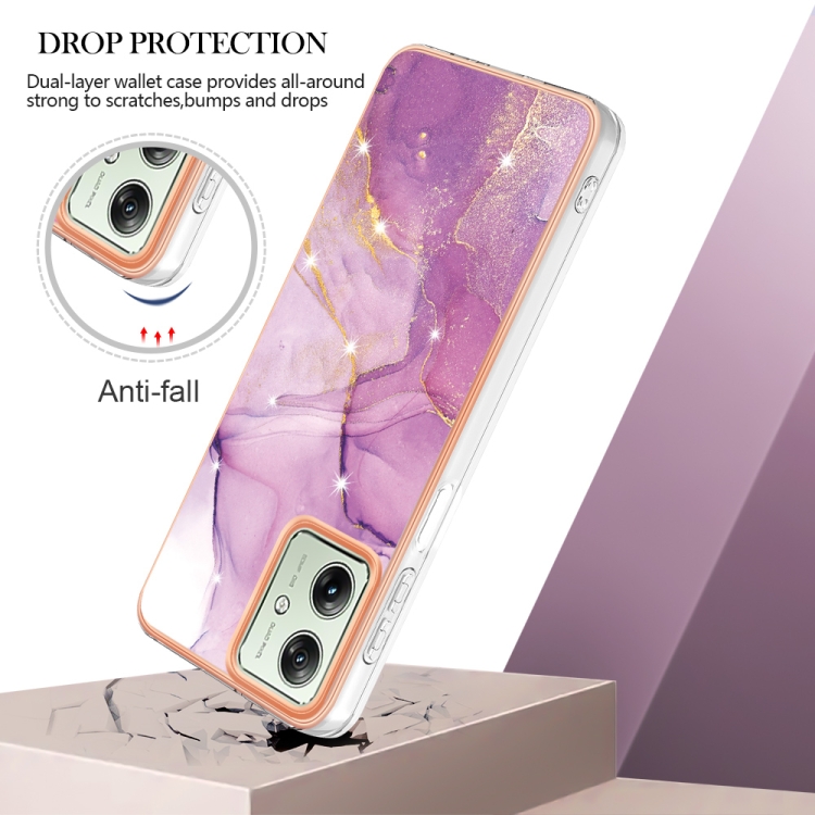 El estuche para Motorola Moto G54 con diseño IMD de doble cara y acabado en mármol galvanizado en color Púrpura está fabricado para ofrecer una protección integral y estilizada a su dispositivo. Construido con materiales TPU y PC de alta resistencia, este estuche protege eficazmente contra arañazos, suciedad y desgaste diario, manteniendo la integridad del Teléfono. Su estructura ligera y compacta facilita la instalación y remoción sin complicaciones, mientras que los recortes precisos aseguran el acceso completo a todos los Puertos, Botones y funciones del Motorola Moto G54.