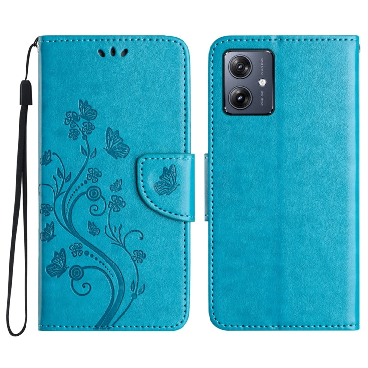 Funda de Cuero para Motorola Moto G54 con Tapa y Patrón de Flores y Mariposa (Azul)