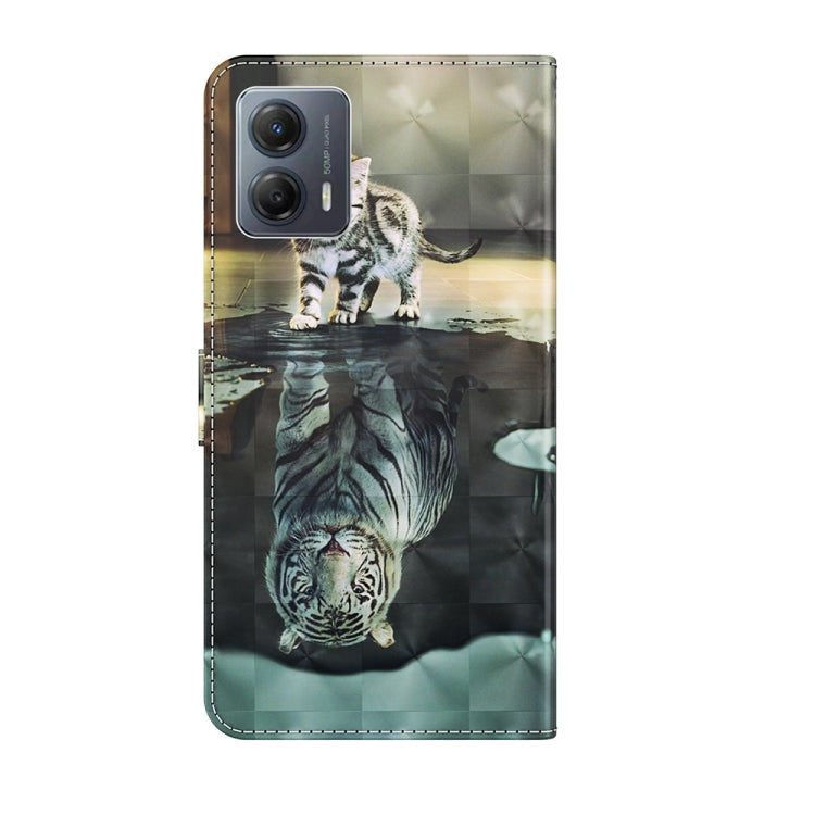 Funda de Cuero con Tapa para Motorola Moto G54 con Patrón de Pintura 3D (Gato Tigre)