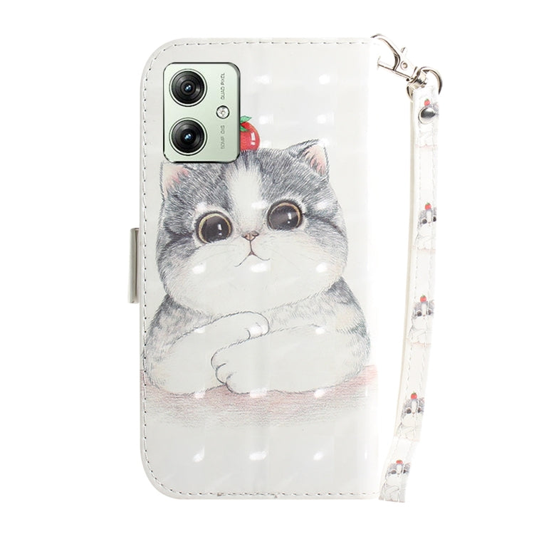 Funda de Cuero para Motorola Moto G54 con Tapa Horizontal y Diseño 3D (Lindo Gato)