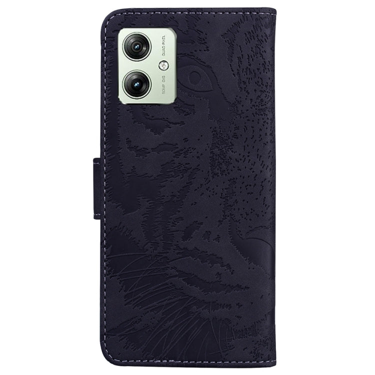 Funda de Cuero para Motorola Moto G54 Tiger con Patrón en Relieve (Negro)
