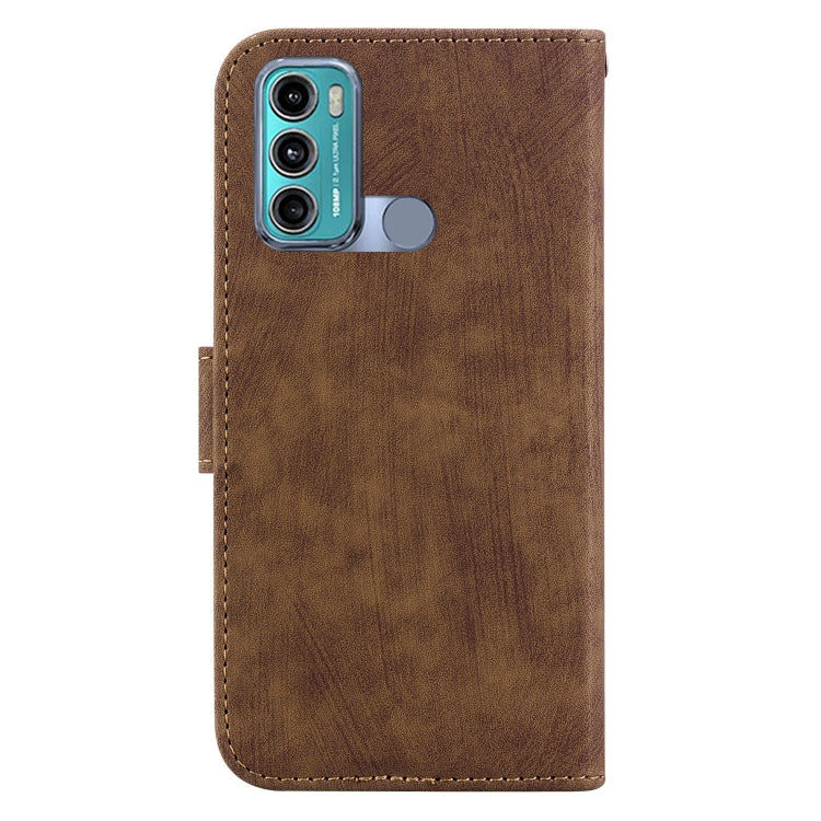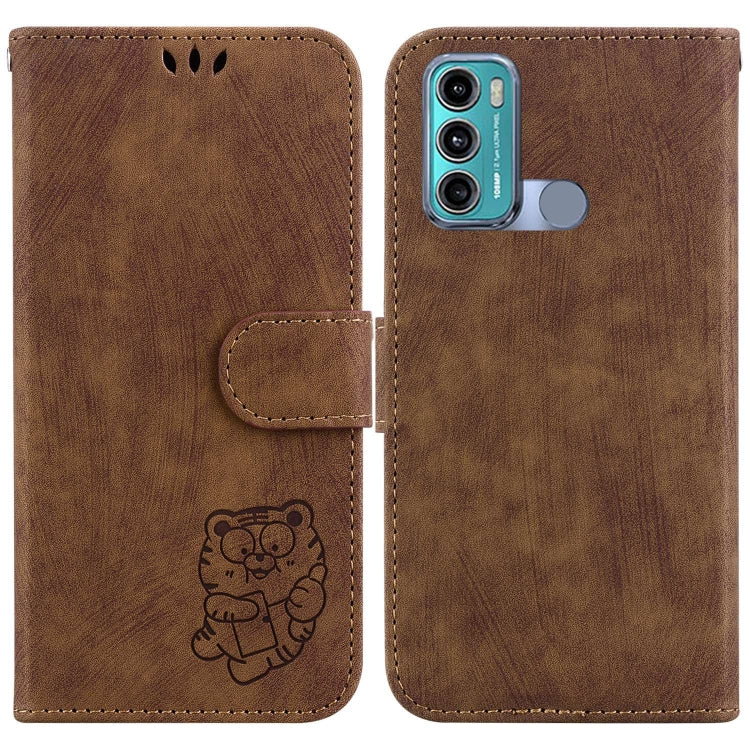 Funda de Cuero para Motorola Moto G60 y G40 Fusion Little Tiger en Relieve (Marrón)