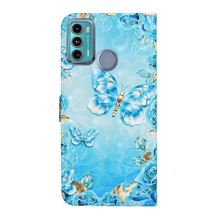Funda de Cuero Oil Relieve para Motorola Moto G60 y G40 Fusion con Dibujo 3D (Mariposas Azules)