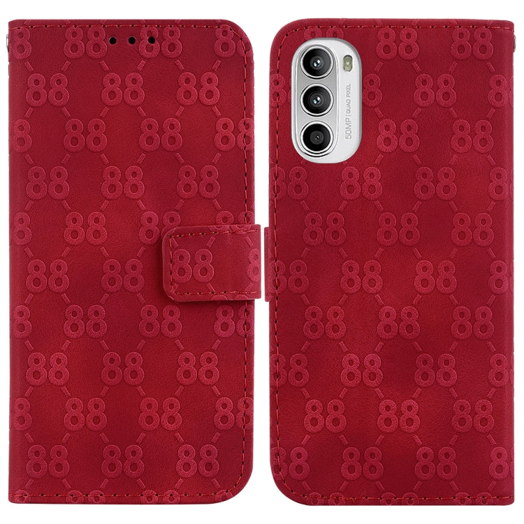 Estuche para Motorola Moto G62 5G de Cuero en Relieve con Doble Forma de 8 (Rojo)