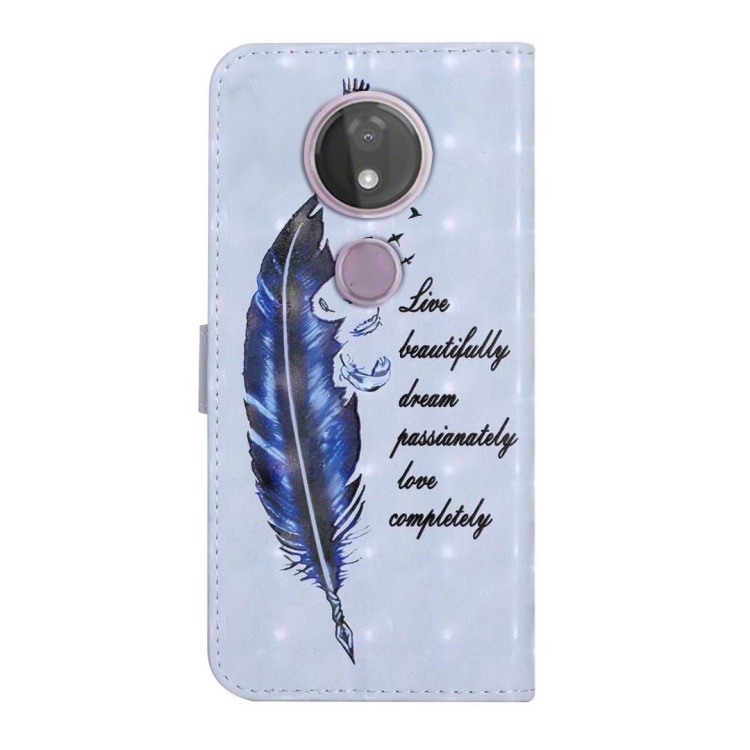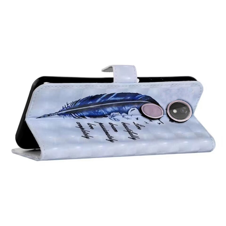 Funda de Cuero para Motorola Moto G7 Power con Dibujo 3D en Relieve (Pluma Azul)