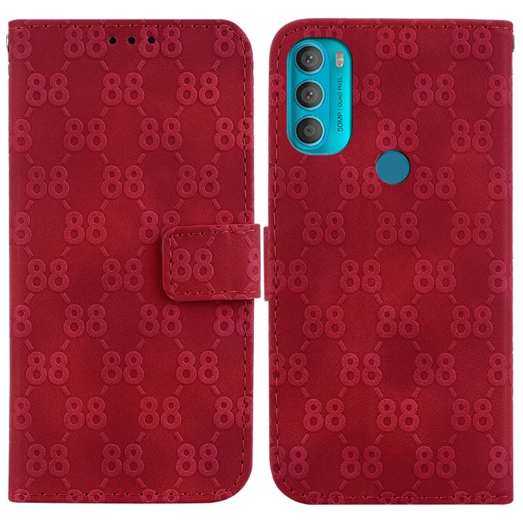 Estuche para Motorola Moto G71 5G de Cuero en Relieve Doble Forma de 8 (Rojo)