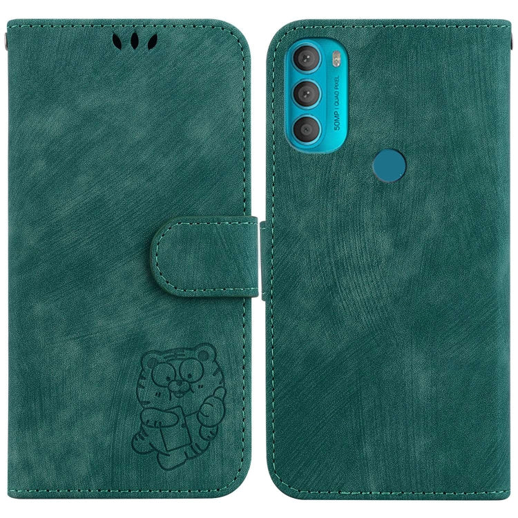 Funda para Motorola Moto G71 5G de Cuero con Relieve Little Tiger (Verde)