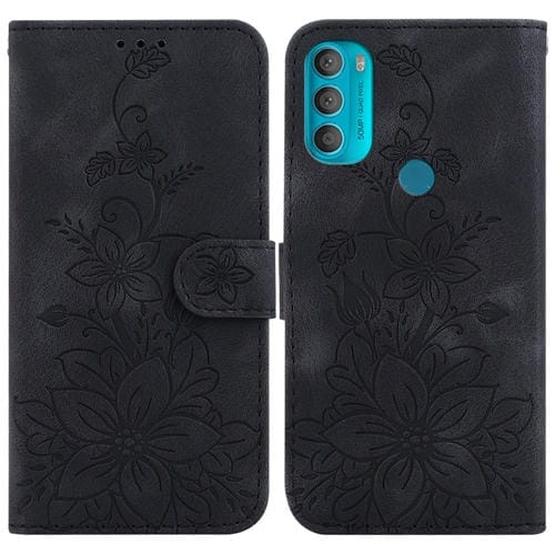 - 1x Funda de Cuero en Relieve para Motorola Moto G71 5G Lily (Negro)
