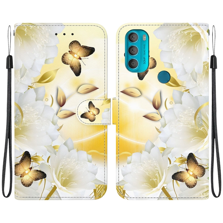 Funda de Cuero para Motorola Moto G71 con Dibujo Epiphyllum de Mariposa Dorada y Textura de Cristal