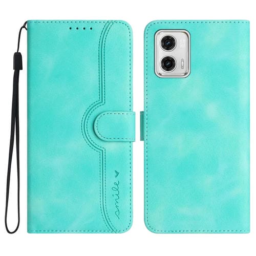 For Motorola Moto G73 Leather Phone Case Skin Feeling Heart Pattern Cover (Light Blue)