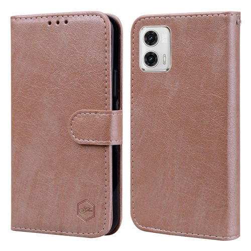 Funda para Motorola Moto G73 con Textura de Cuero Aceitoso PU + TPU (Champán)
