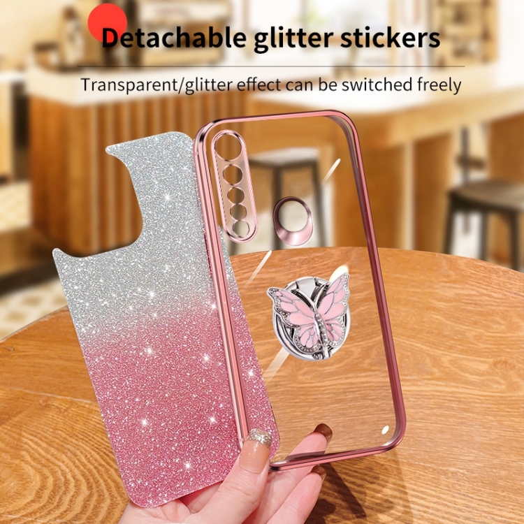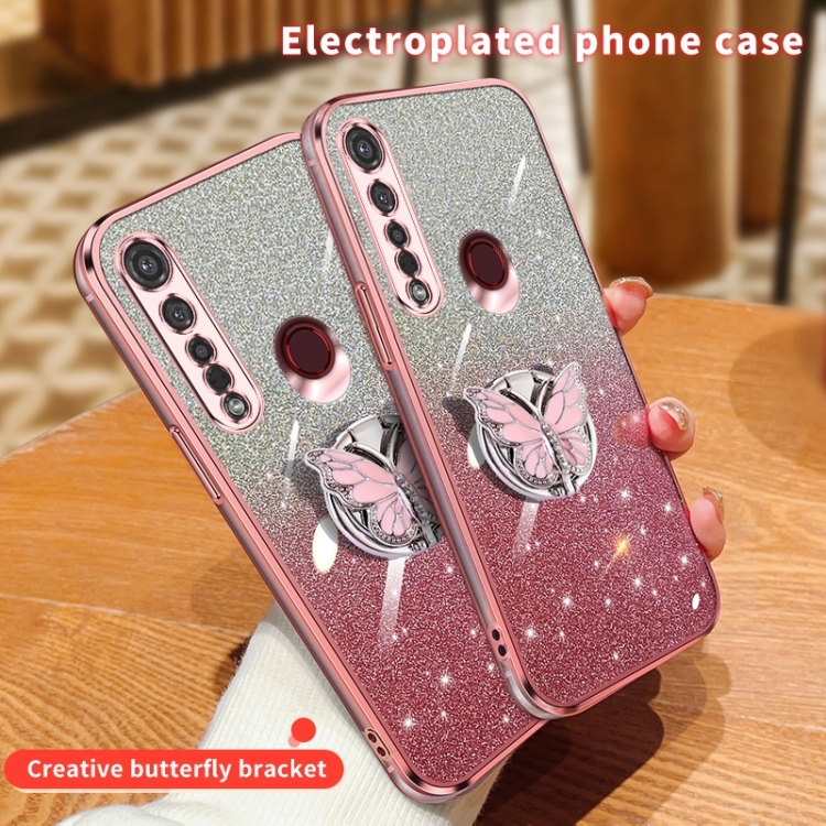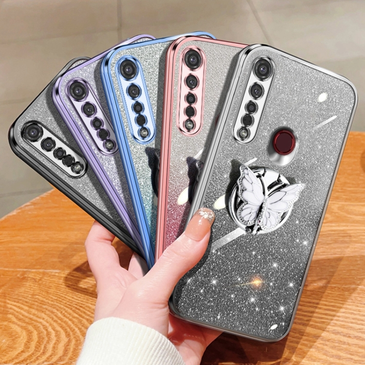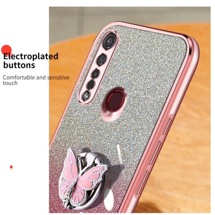 Funda TPU para Motorola Moto G8 Plus con Soporte de Mariposa y Brillo Degradado (Negro)