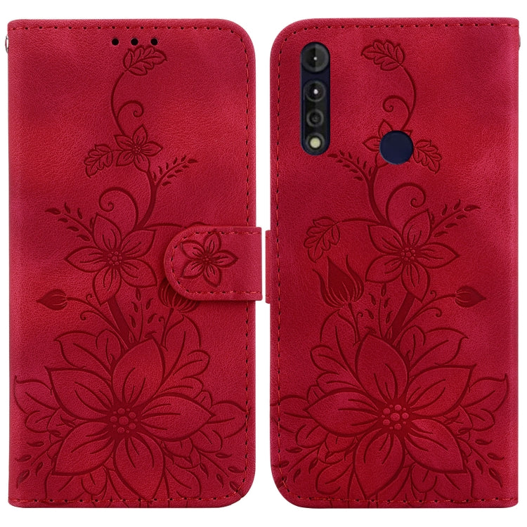 Funda de Cuero con Relieve Lily para Motorola Moto G8 Power Lite (Rojo)