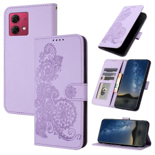 - 1x Funda de Cuero para Motorola Moto G84 5G Datura Flower con Tapa en Relieve (Púrpura)