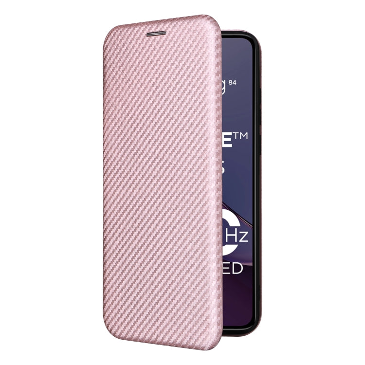 Funda de Cuero para Motorola Moto G84 5G con Tapa y Textura de Fibra de Carbono (Rosa)