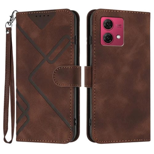 Funda de Cuero para Motorola Moto G84 5G con Sensación de Piel y Patrón de Líneas (Café)