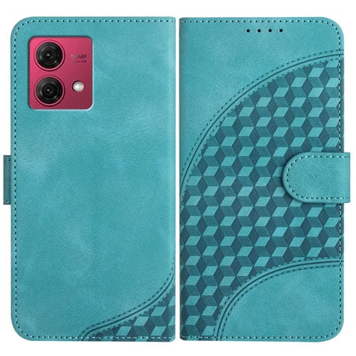 Funda de Cuero para Motorola Moto G84 5G Yx0060 con Relieve y Cabeza de Elefante con Cordón (Azul Claro)
