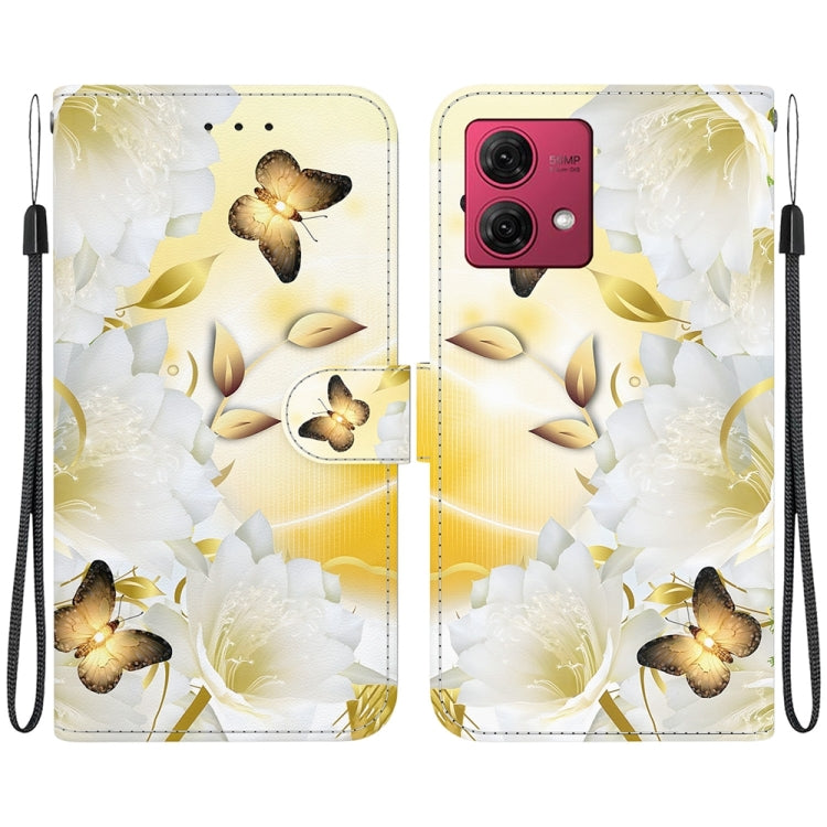 Estuche de Cuero para Motorola Moto G84 con Dibujo Coloreado y Textura de Cristal (Epiphyllum de Mariposa Dorada)