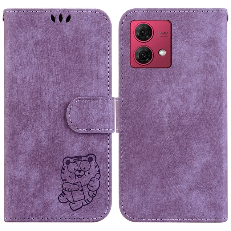 Funda de Cuero para Motorola Moto G84 con Relieve Little Tiger (Púrpura)