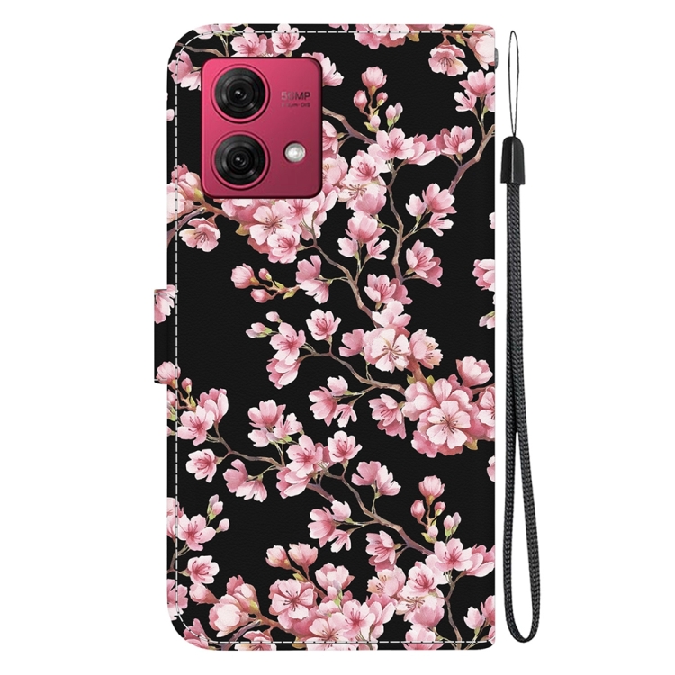Funda de Cuero para Motorola Moto G84 con Dibujo Coloreado y Textura de Cristal (Plum Bossom)