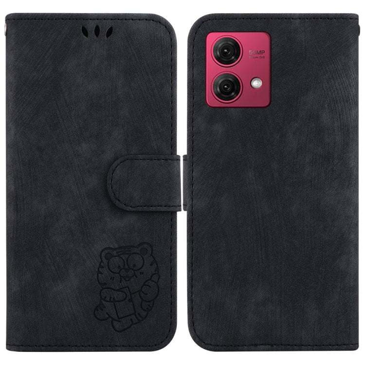 Funda de Cuero para Motorola Moto G84 Little Tiger en Relieve (Negro)