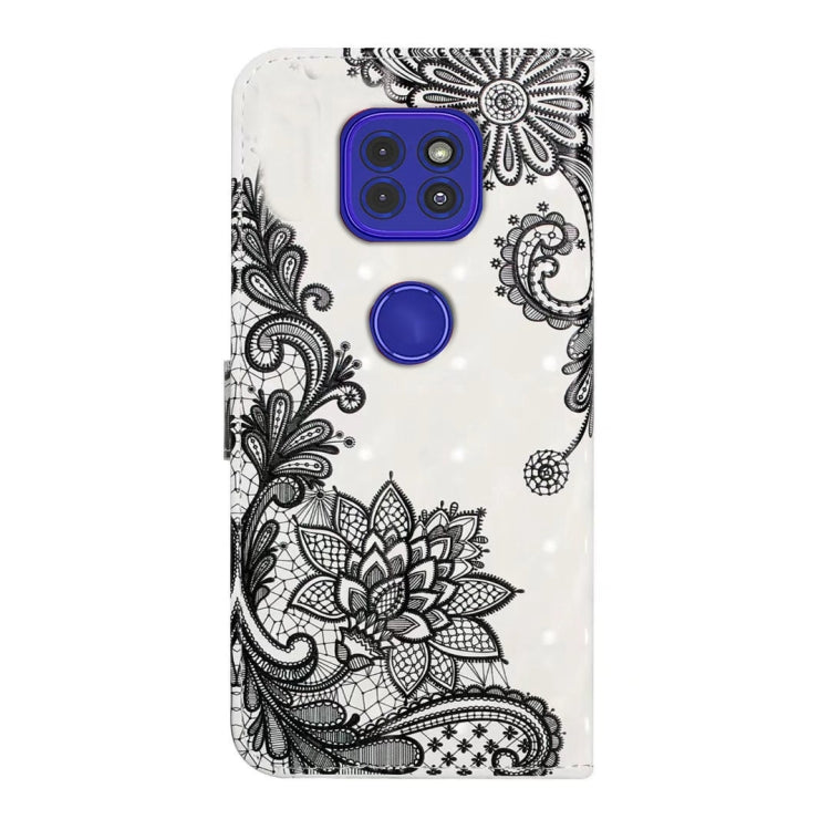 Funda para Motorola Moto G9 Play y E7 Plus Cuero con Dibujo 3D en Relieve al Óleo (Flor de Encaje)