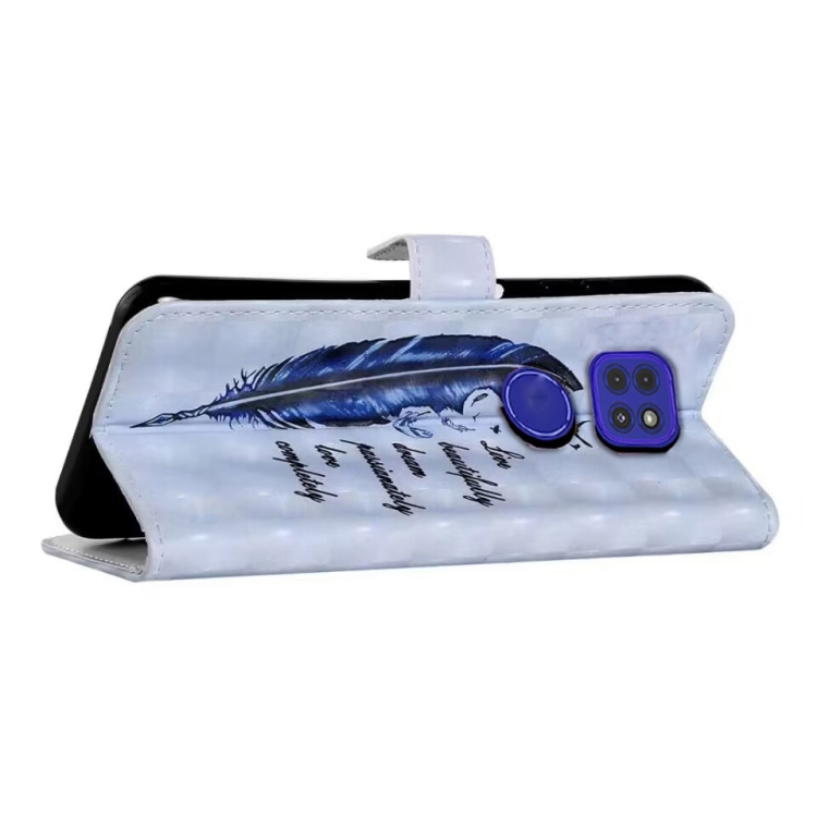 Funda de Cuero para Motorola Moto G9 Play y E7 Plus con Dibujo 3D en Relieve al Óleo (Pluma Azul)