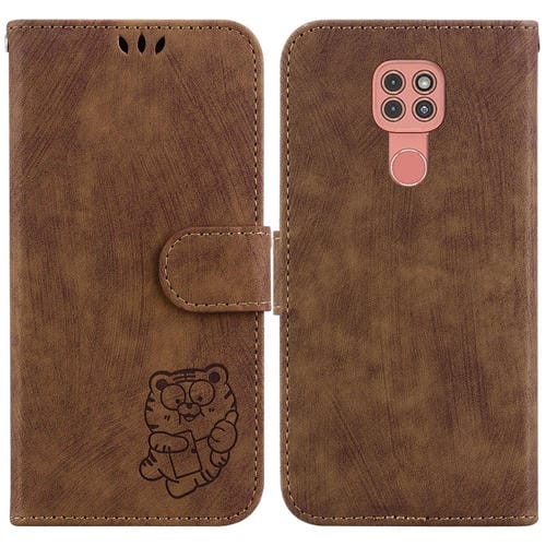 For Motorola Moto G9 Play / E7 Plus Little Tiger Embossed Leather Phone Case(Brown)