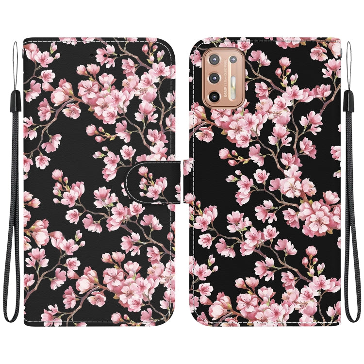 Funda de Cuero para Motorola Moto G9 Plus con Dibujo Coloreado y Textura de Cristal (Flor de Ciruelo)