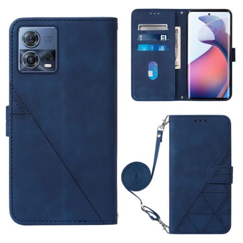 Funda de Cuero Crossbody 3D para Motorola Moto S30 Pro 5G con Tapa En Relieve (Azul)