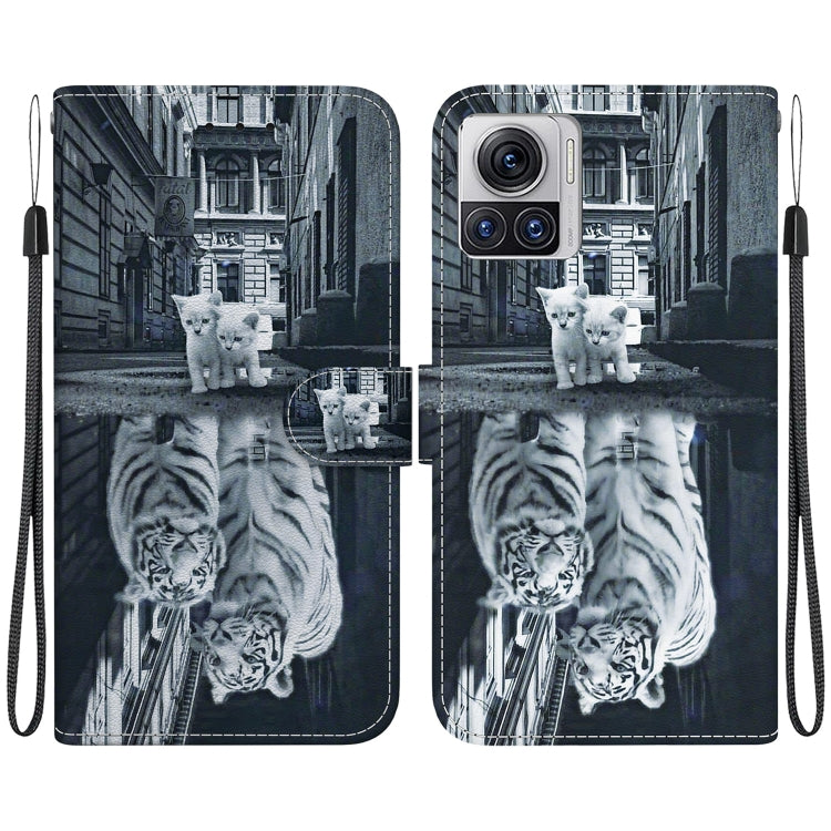 Funda de Cuero para Motorola Moto X30 Pro 5G con Dibujo Coloreado y Textura de Cristal (Reflejo de Tigre Gato)
