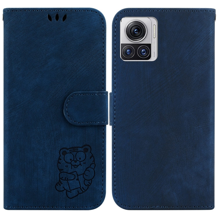Funda para Motorola Moto X30 Pro 5G de Cuero con Relieve Little Tiger (Azul Oscuro)