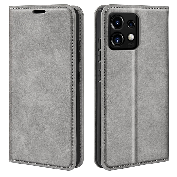 Estuche para Motorola Moto X40 Pro de Cuero con Succión Magnética Piel Retro (Gris)