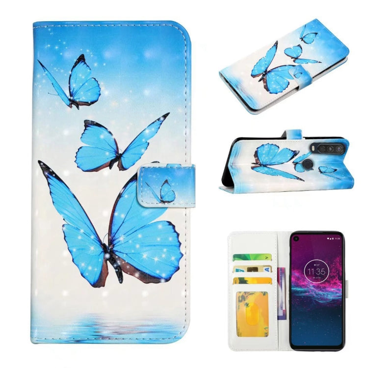 Funda de Teléfono Motorola One Action Cuero con Dibujo 3D en Relieve al Óleo (3 Mariposas)