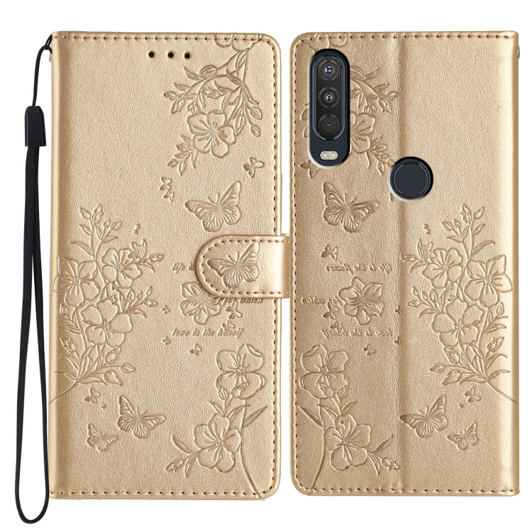 Funda de Cuero para Motorola P40 Power con Mariposas y Flores (Dorado)