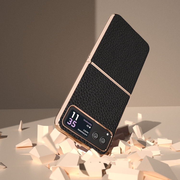 Funda para Motorola Razr 40 Nano con Textura Litchi de Cuero Genuino (Negro)