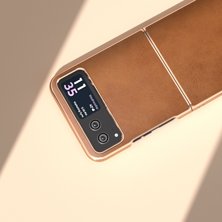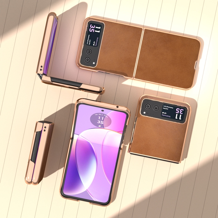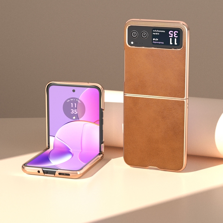 Funda Protectora Motorola Razr 40 Nano Galvanoplastia Textura Piel de Vaca Doble Color (Marrón)