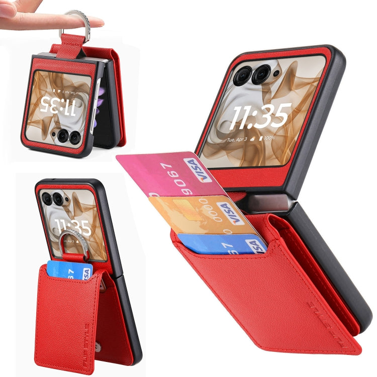 Funda para Motorola Razr 50 Ultra con Billetera y Anillo de Cuero (Rojo)