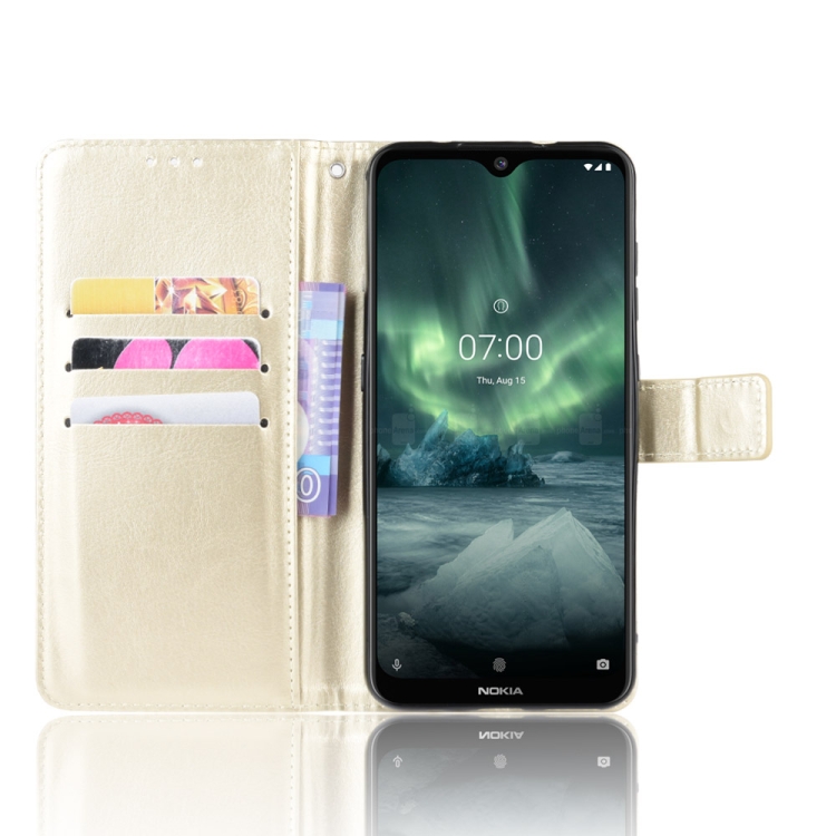 Funda de Cuero Retro para Nokia 7.2 / 6.2 con Tapa Horizontal, Soporte, Ranuras para Tarjetas y Marco de Fotos (Dorado)