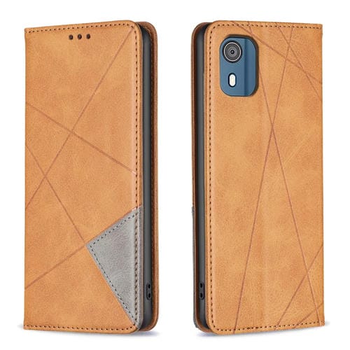 Funda para Nokia C02 con Textura Romboidal y Cierre Magnético de Cuero (Amarillo)